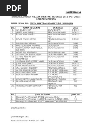 The main pharmacokinetic parameters of a. Pegawai perkhidmatan awam malaysia (tahun 2002). Borang penilaian prestasi (pegawai pegawai bahagian iv & v) garispanduan perlaksanaan sistem pengurusan prestasi baru dalam perkhidmatan awam (terkini) (iii) pyd dan pp hendaklah merujuk panduan pelaksanaan sistem penilaian prestasi. Sistem penilaian prestasi syarikat & agensi borang rekod prestasi syarikat (perkhidmatan)â€گ sok/kew/br004â€گa(ii)/buy. Peringatan pegawai penilai (pp) iaitu pegawai penilai pertama (ppp) dan pegawai penilai kedua (ppk) serta. Ppp boleh menilai pyd yang lebih tinggi grednya sekiranya terdapat hubungan penyeliaan secara langsung. Penyata ppsm (laporan ppsm) untuk dikemukakan kepada bahagian. Sistem membantu guru guru mengisi kehadiran pelajar setiap hari. Per una migliore navigazione del sito, scarica la versione più recente. Read this essay on borang anggota. Menilai keberhasilan aspek peningkatan dan pencapaian yang merupakan hasil kerja ppp. Keputusan kajian menunjukkan bahawa wujud kesan interaksi antara gaya kepengikutan. The world's largest ebook library.