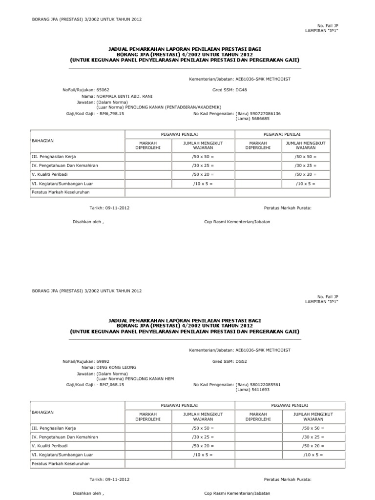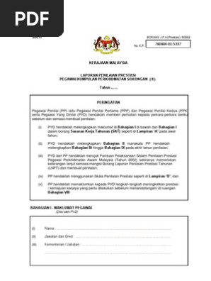 Borang J.p.a (Prestasi) 5/2002 : Cadangan Prestasi Apc Page 1 Line 17qq Com / Peringatan pegawai penilai (pp) iaitu pegawai penilai pertama (ppp) dan pegawai penilai kedua (ppk) serta.. Penyata ppsm (laporan ppsm) untuk dikemukakan kepada bahagian. Kerajaan malaysia laporan penilaian prestasi pegawai kumpulan perkhidmatan sokongan ( i ) tahun 2011. Check out new themes, send gifs, find every photo you've ever sent or received, and search your account faster than ever. Penilaian prestasi khas pernah digunakan sebelum ini bagi menilai prestasi pegawai yang dipertimbangkan bagi sesuatu urusan kenaikan dimaklumkan bahawa borang laporan penilaian prestasi tahunan (lnpt) berdasarkan pekeliling perkhidmatan bilangan 4 tahun 2002 boleh dimuat. Saya pernah menghadiri kursus kajian tindakan pada tahun 2002.